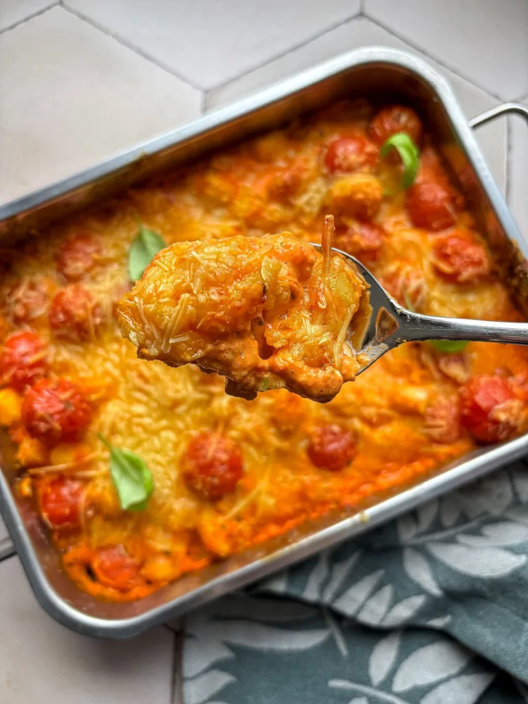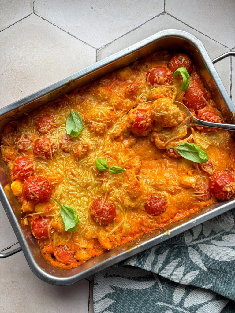 Wat deze ovenschotel zo fijn maakt, is dat je weinig stappen nodig hebt maar toch veel smaak krijgt. De gnocchi hoeft niet voorgekookt te worden, hij bakt lekker mee in de romige saus. De gegrilde paprika’s geven een lichte zoetheid, gecombineerd met crème fraîche heb je meteen die romigheid die een pasta zo lekker maakt. Binnen no-time komt de geur van geroosterde paprika en zachte gnocchi je keuken binnen en kun je niet wachten om te proeven.