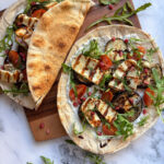 Deze halloumi burger met tzatziki koolsla is heerlijk met zoete aardappelfriet, een frisse couscoussalade, een heerlijke crispy aardappelsalade of gewoon wat ovenaardappeltjes erbij. Geen halloumi in huis? Probeer bijvoorbeeld eens gegrilde feta of paneer. Houd je van wat extra pit? Voeg een likje harissa of wat jalapeno toe op je broodje.