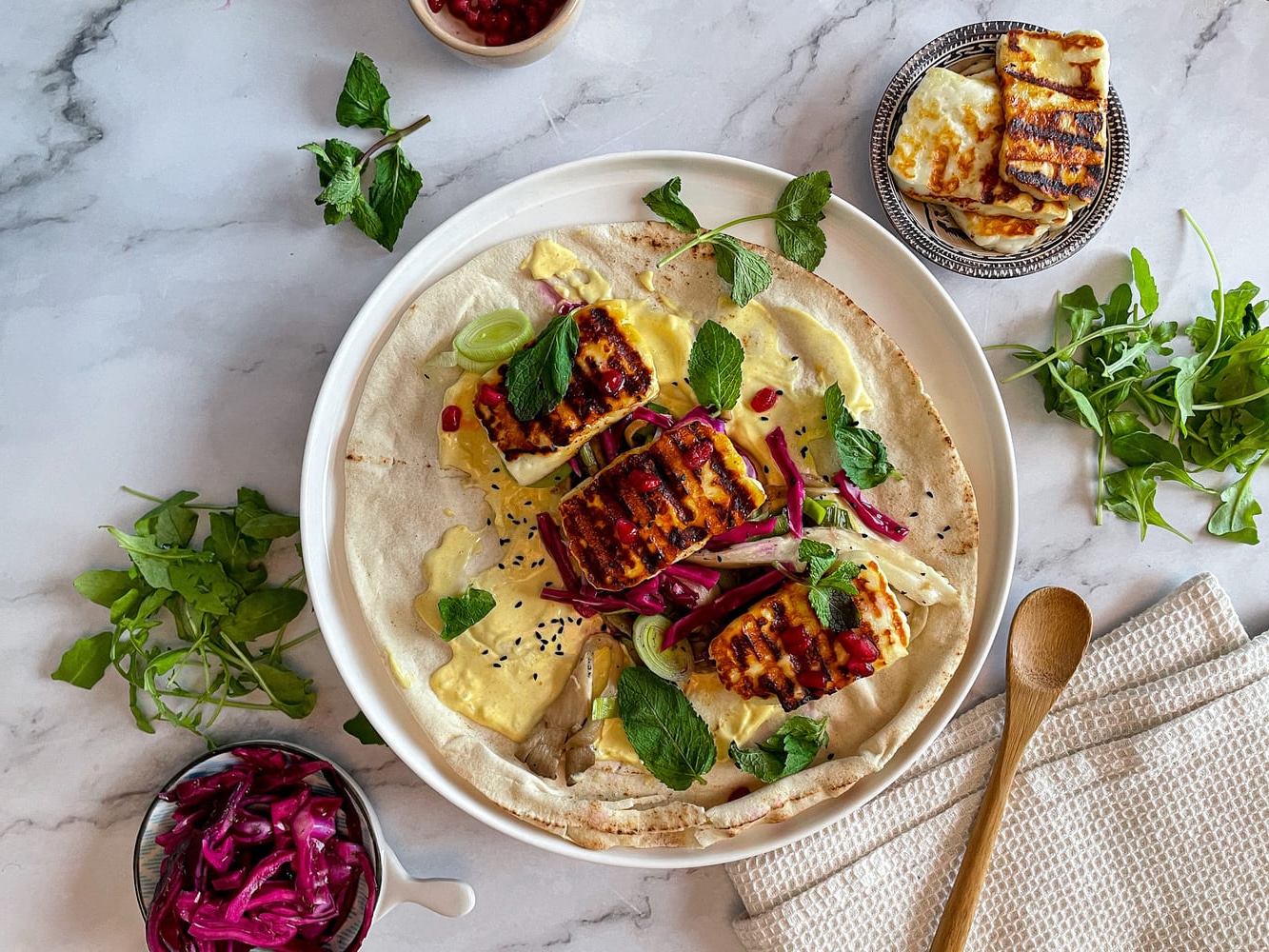 Fan van halloumi? Ik ook! Deze stevige, zoute kaas is ideaal om te bakken of te grillen – dan krijgt hij zo’n lekker knapperig randje. Perfect voor allerlei vegetarische gerechten. Op deze pagina vind je mijn favoriete halloumi recepten. Denk aan een frisse halloumi salade, een kleurrijke flammkuchen of een goedgevuld broodje. Of je nou een snelle lunch zoekt, een origineel hoofdgerecht of gewoon zin hebt in iets hartigs zonder vlees: met halloumi zit je altijd goed. En het fijne is: zo’n recept met halloumi heb je vaak in een mum van tijd op tafel staan.