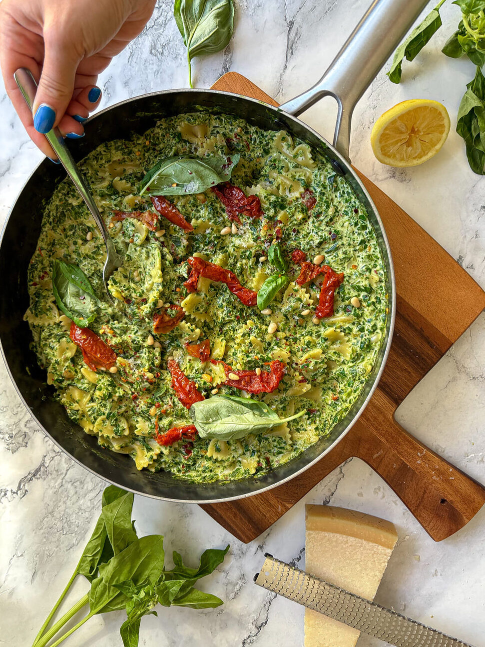 Wat deze romige spinazie pasta zo onweerstaanbaar maakt