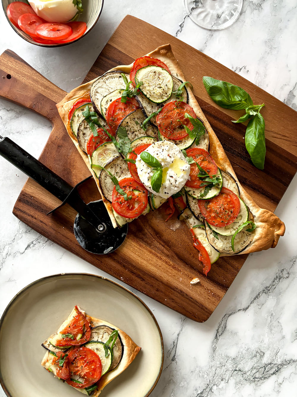 Ratatouille flammkuchen met burrata