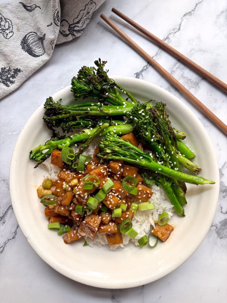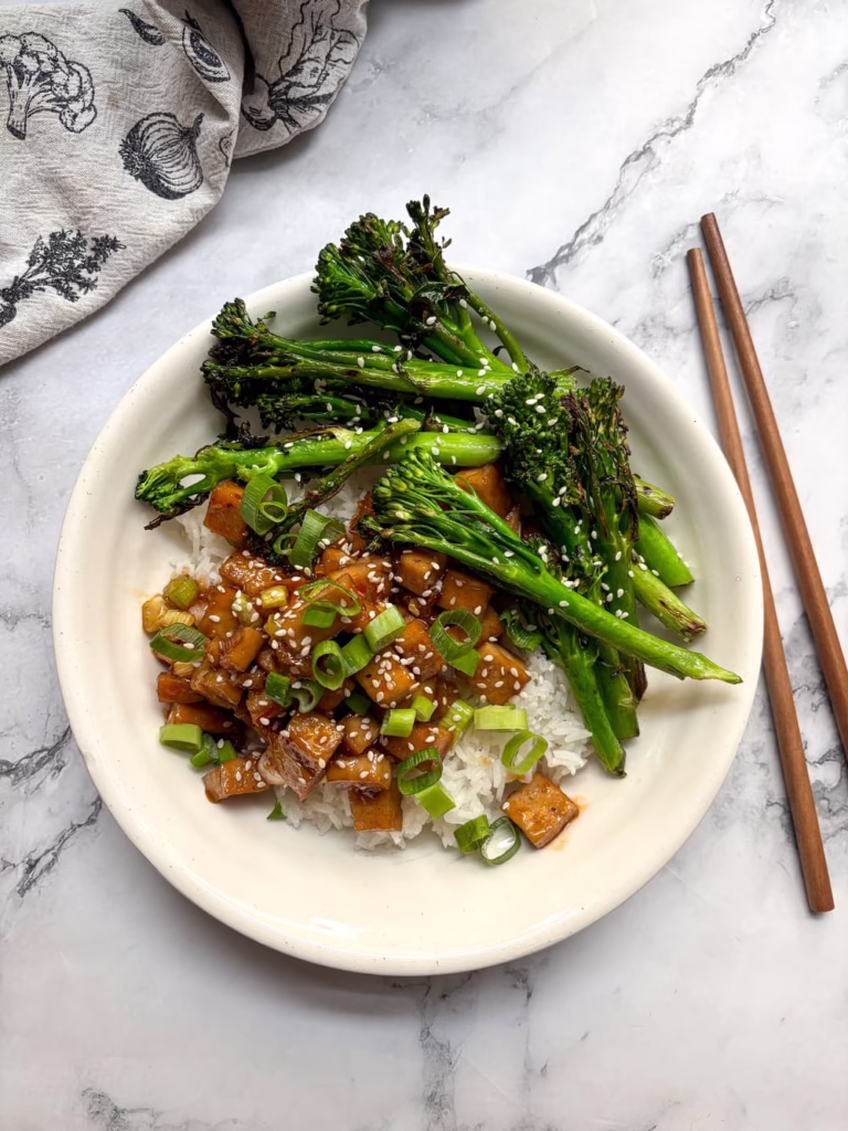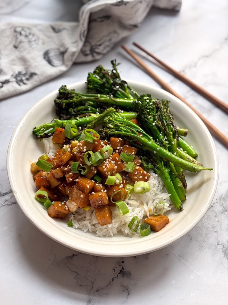 Als je zin hebt in iets makkelijks, maar wél met veel smaak, dan is deze rijst met honing-sesam tofu en bimi een perfecte keuze. De tofu wordt omhuld in een plakkerige saus van honing, sojasaus en een vleugje chili. Het resultaat? Een sticky, hartig en licht pittig geheel dat perfect samengaat met de frisse bite de bimi. Dit vegetarisch rijstrecept is niet alleen snel klaar, maar ook verrassend veelzijdig. Ideaal voor een doordeweekse avond waarop je wel goed wilt eten, maar geen uren in de keuken wilt staan.