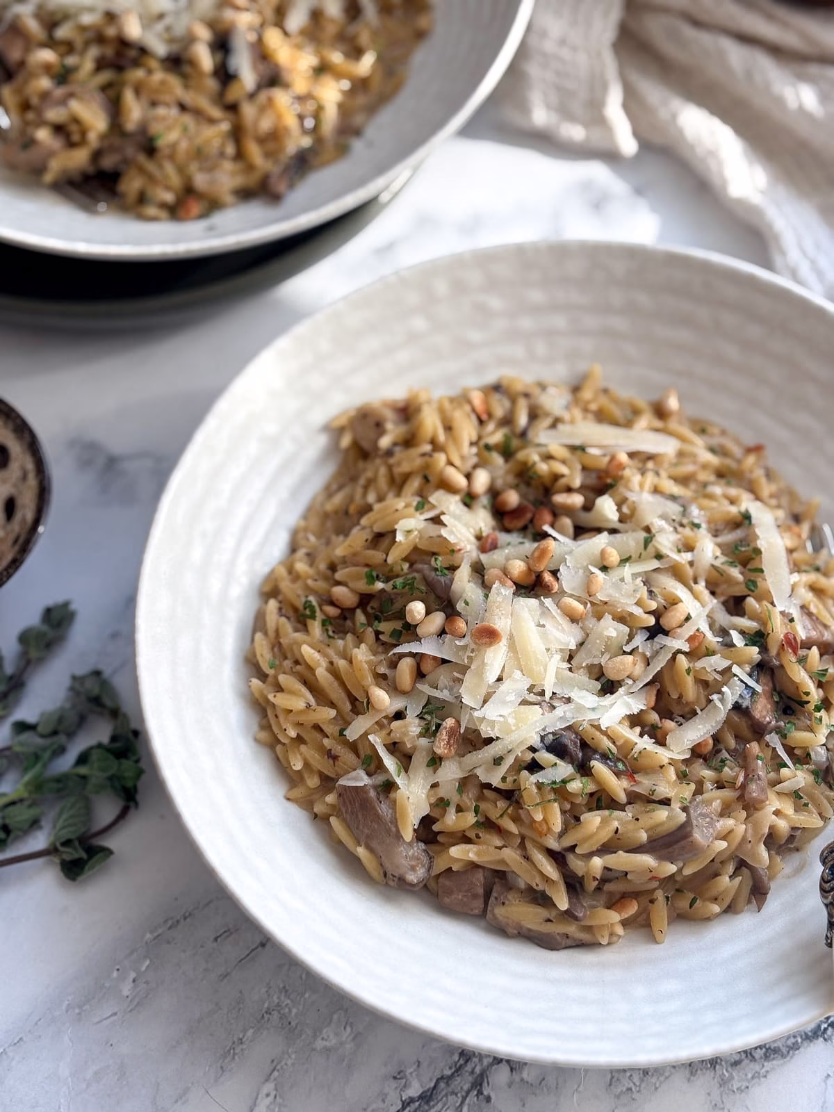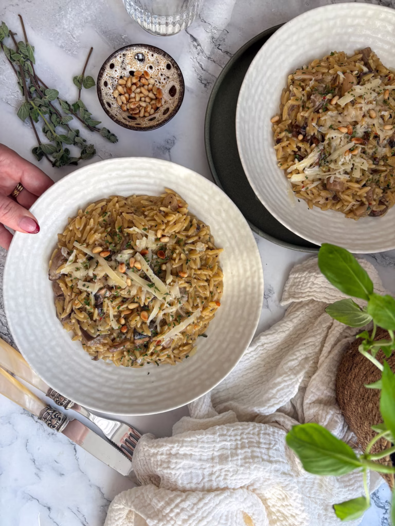 Deze orzo met truffel is zo’n gerecht waar iedereen blij van wordt. De smaken zijn zacht en verfijnd, zonder ingewikkeld te zijn. Of je nu groots uitpakt of het juist klein en knus houdt: dit gerecht past altijd en bij ieder moment. Orzo met paddenstoelen is lekker, stijlvol én verrassend snel klaar. Want wie zegt dat een feestelijk vegetarisch hoofdgerecht veel werk moet zijn?